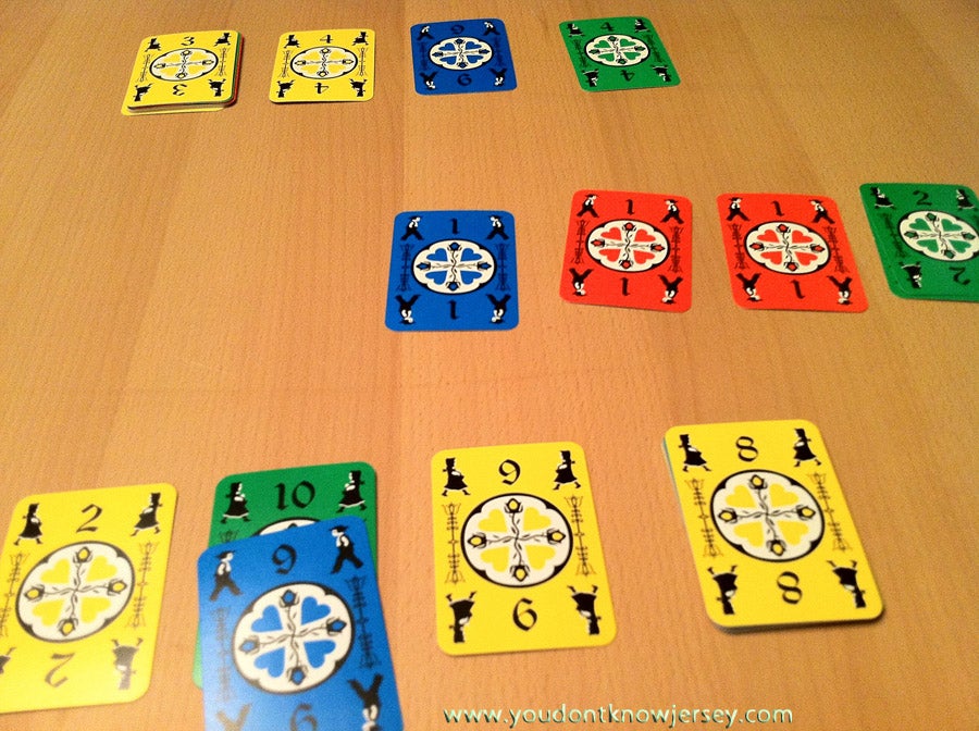 Dutch Blitz is such vonderful goot fun. Red and blue cards show a Pennsylvania Dutch boy while yellow and green cards show a Pennsylvania Dutch girl. Now he gets rid of one of his cards and places it on the discard pile it can also be the same card he picked up just a moment ago.