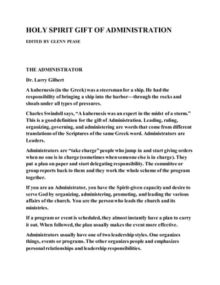 Holy Spirit Gift Of Administration
